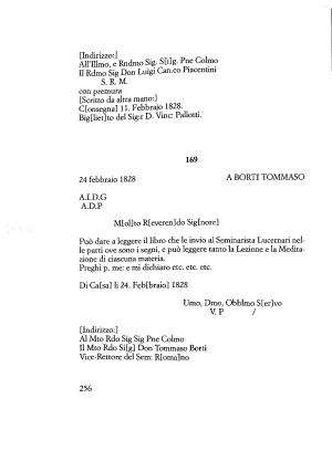 Può dare a leggere il libro che le invio al Seminarista Lucernari nelle parti ove sono i segni , e può leggere tanto la Lezione e la Meditazione di ciascuna materia .