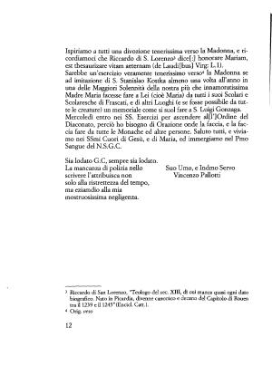 Ispiriamo a tutti una divozione tenerissima verso la Madonna , e ricordiamoci che Riccardo di S . Lorenzo5 dice [: J honorare Mariam , est thesaurizare vitam aeternam ( de Laudi [ bus ] Virg : L . l ).
