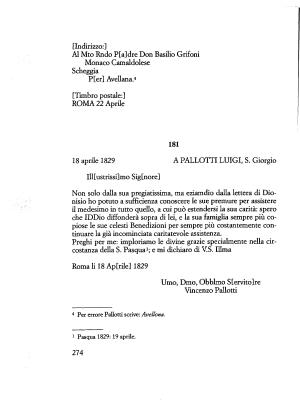 18 aprile 1829 A PALLOTTI LUIGI , S . Giorgio Ill [ ustrissi ] mo Sigtnore ]