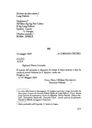 2 La carta della lettera è danneggiata . Al margine superiore a tergo sta scritto da altra mano : Lettere di Geremia Pallotti [ figlio di Luigi Pallotti ]. Poi in diversi posti : Esercizi di matematica e forse di calligrafìa : Vitorio Danieli - Filippo Danieli - Domeniche Marincalli - Pasquale Calori - Ancelo garzone di garatonio