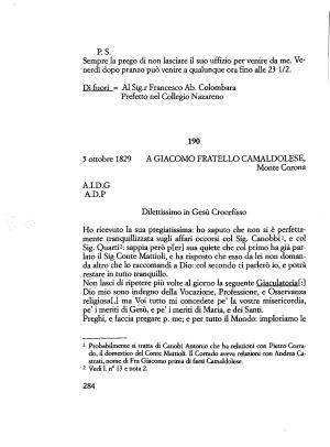 Dio mio sono indegno della Vocazione , Professione , e Osservanza religiosa !,] ma Voi tutto mi concedete pe ’ la vostra misericordia , pe ’ i meriti di Gesù , e pe ’ i meriti di Maria , e dei Santi . Preghi , e faccia pregare p . me ; e per tutto il Mondo : imploriamo le