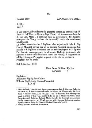 Beati V . Ballotti , Roma , 2 . ed . 1953 , pp . 13-22 . - L ’ Amoroso dice del tempo nel quale la lettera n ° 192 venne scritta :” E fu qui [ in S . Maria del Pianto ] che il