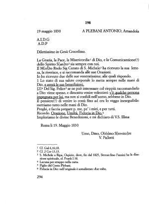 11 pensiere (!) di venire io costà fino ad ora lo veggo ineseguibile : mettiamo tutto nelle mani di Dio . Preghi , e faccia pregare p . me , pe ’ i miei , e per tutti . Ricordo . Orazione . Umiltà . Fiducia in Dio . 6