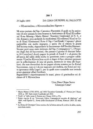 1 Mario Mattei ( 1792-1870 ), nel 1830 Tesoriere Generale , cf Notizie per lAnno 1830 , p . 185 . Sarà creato Cardinale nel 1832 .