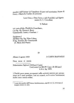 Zelantissimo Sigtnor ] Ab [ bate ] Casini . Con [ vento ] de RR . PP . Capp : di Alb [ ano ] il dì 6 . Ag . 1818 .