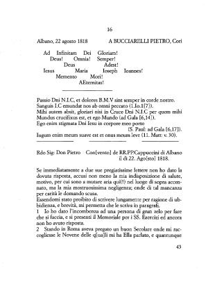 Rdo Sig : Don Pietro Con [ vento ] de RR . PP . Cappuccini di Albano il dì 22 . Ago [ sto ] 1818 .