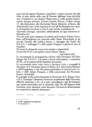 Ora che sono state stampate , le mando Un ’ Orazione al Smo Crocefisso coll ’ indulgenza per metterla nella Chiesa Parrochiale in un piccolo Quadro alla publica lettura , e vantaggio dei Fedeli del N . S . G . C , e suffraggio (!) delle anime Purganti , e gloria di tutto il Paradiso .