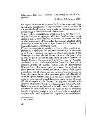 Zelantissimo Sig : Don : Tommaso . Con [ vento ] de RR . PP Cappuctcini ] di Albano il dì 24 . Ago . 1818 .