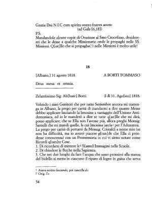 Mandandole alcune copie di Orazione al Smo Crocefisso , desidererei che le desse a qualche Missionario onde le propaghi nelle SS . Missioni . Q [ ue ] llo che si propagha (!) nelle Missioni è molto utile !