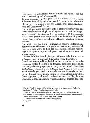 5 Della Patrizi non si sa nulla di preciso . San Gaspare del Bufalo però scrive nell ’ ottobre 1820 a Gregorio MuccioE : “ la premuniranno di un viglietto per la