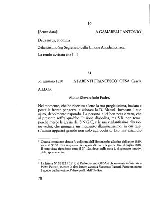 1 La lettera N ° 26 ( 22.9.1819 ) al Padre Parenti OESA è chiaramente indirizzata a dietro Parenti , mentre le altre lettere vanno a Francesco Parenti . Forse un nome è quello del battesimo , l ’ altro quello deU ’ Ordine .