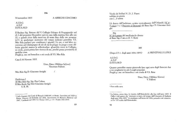 Il Rndmo Sig . Rettore del V . Collegio Urbano di Propaganda1 nel dì 2 del prossimo Decembre sarà in casa dalla mattina fino alle ore 22 , e quindi circa dalla mezz ’ ora di notte fino delle ore awanzate (!): in qualunque momento del tempo indicato potrebbe V . S .