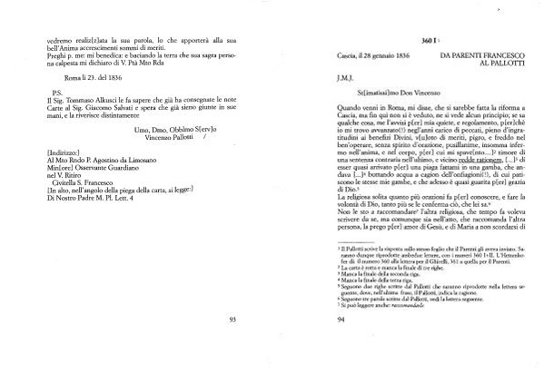 1 II Pallotti scrive la risposta sullo stesso foglio che il Parenti gli aveva inviato . Saranno dunque riprodotte ambedue lettere , con i numeri 360 I + II . L ’ Hettenkofer dà il numero 360 alla lettera per il Ghirelli , 361 a quella per il Parenti .