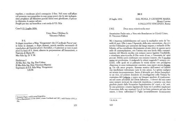 Si degni ricordare a Mog . Vicegerente2 che il Cardinale Pacca3 parte forse in domani , o dopo domani , perciò sarebbe necessario di concludere gli Esercizi p [ er ] i Servidori , e Camerieri se non si può p [ er ] la festa di S . Anna , almeno in preparazione all ’ Assunzione , o