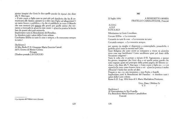Al Mto Rndo P . D . Giuseppe Maria Eremita Carnai : del S . Eremo di Monte Corona