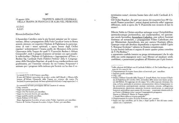 19 agosto 1836 TRAPPISTI : ABBATE GENERALE ..