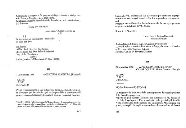 1 Nel 3.11.1831 il Pallotti raccomanda “ la suppEca con Rescritto di un certo Lorenzo Colasanti ... che brama abbracciare lo Stato religioso ” ( l . n ° 234 ). Manca la prova se il certo ed il povero Colosanti siano la stessa persona .