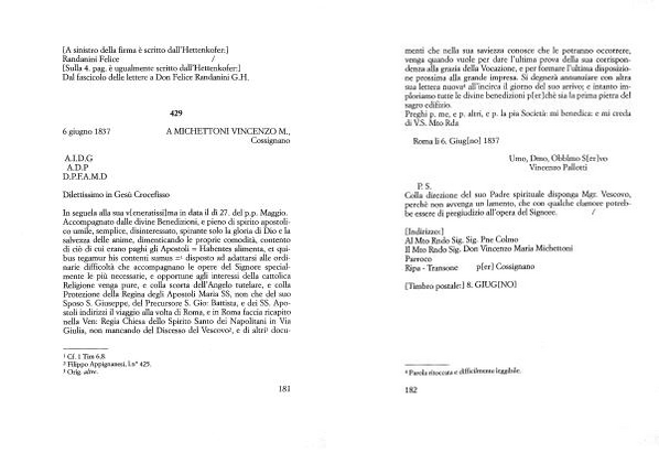 Dal fascicolo delle lettere a Don Felice Randanini G . H .