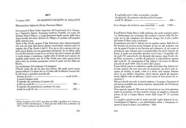 13 marzo 1838 DA MASPANI GIUSEPPE AL PALLOTTI Hl [ ustrissi ] mo Sig [ nor ] e D [ o ] n Vincenzo Pallotti