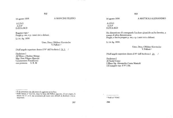 2 Nelle lettere n ° 512-514 , dopo la firma del Pallotti seguono , di suo pugno , le lettere Ad . U . et O . che nonostante gli esami sono difficili da decifrare e da interpretare .