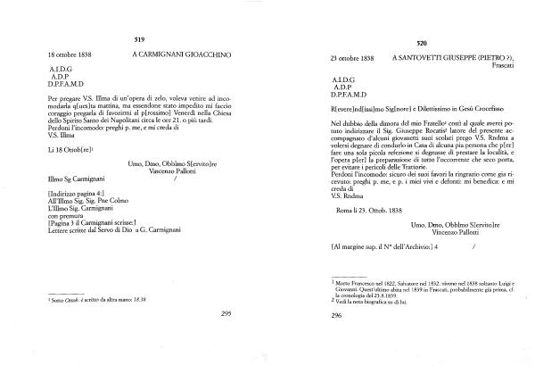 Lettere scritte dal Servo di Dio a G . Carmignani