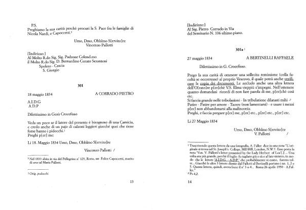 1 Trascrivendo questa lettera da una fotografia , A . Faller dice in una nota :” L ’ originale si trova nel St . Joseph ’ s College , Mill Hill , London , N . W . 7 . Esso porta la nota ‘ Ven . V . Pallotti ’ s letter presented by thè Lady Herbert of Lea ’[ J ... Una volta era più grande , perchè il foglio fu tagliato giù e sù e al lato sinistro , in modo che le lettere ‘ A . I . D . G , - A . D . P .’ che probabilmente vi erano , furono tolte ... Giacché le altre 3 lettere dirette dal Pallotti al Bertinelli portano i nn . 1 , 2 e 5 . Questa lettera , quindi , aveva forse il n “ 3 o 4 ... Roma 26 aprile 1950 - A . Faller .”
