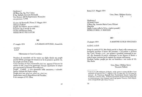 [ Scritto dal Bertinelli :] Roma 27 Maggio 1834 Abb [ at ] e Pallotti [ Sigillo del Pallotti , ancora visibile :]