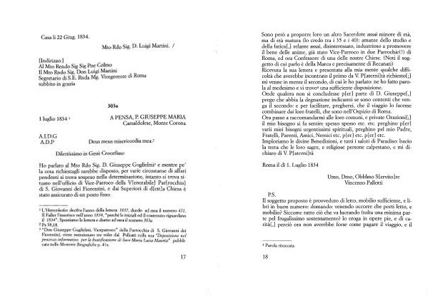1 luglio 1834 1 A PENSA , P . GIUSEPPE MARIA Camaldolese , Monte Corona