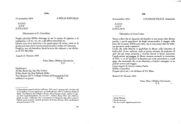 Palloni suole scriverla . Quindi spostiamo la lettera all ’ anno 1834 , attribuendo ad essa il numero 319a .