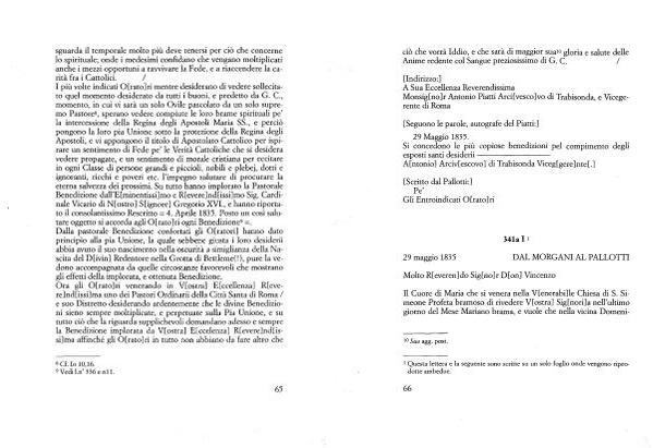 Ora gli O [ rato ] ri venerando in V [ ostra ] Eccellenza ] R [ evere ] nd [ issi ] ma uno dei Pastori Ordinarli della Città Santa di Roma / e suo Distretto desiderando ardentemente che le divine Benedizioni sieno sempre moltiplicate , e perpetuate sulla Pia Unione , e su tutto ciò che la riguarda supplichevoli domandano adesso e sempre la Benedizione implorata da V [ ostra ] E [ ccelenza ] R [ evere ] nd [ issi ] ma affinché gli O [ rato ] ri in tutto non abbiano da fare altro che