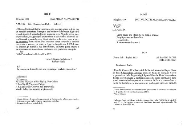 10 luglio 1835 DAL MELIA AL PALLOTTI A . M . D . G . Mio R [ everen ] do Padre A . I . C . P .