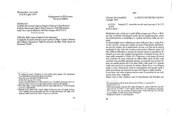8 II copista ha messo l ’ indirizzo in testa della prima pagina . Noi rispettiamo l ’ uso del Pallotti mettendolo dopo la sua firma .