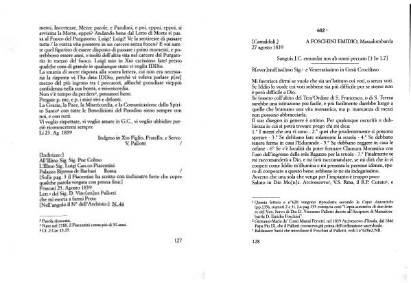 1 Questa lettera e n ° 628 vengono riprodotte secondo le Copie Autentiche ( pp . l35s , numeri 2 e 3 ). La pag . 135 comincia così : " Copia autentica di due lettere del Ven . Servo di Dio D . Vincenzo Pallotti dirette all ’ Arciprete di Massalombarda D . Emidio Foschini ”.