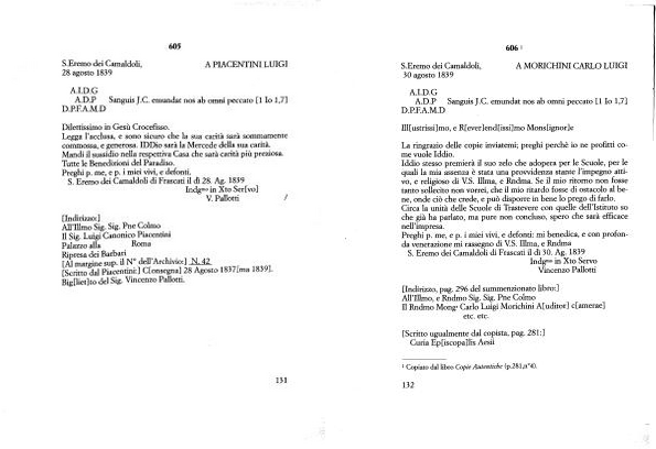 S . Eremo dei Camaldoli di Frascati il dì 28 . Ag . 1839