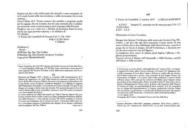—> nota biografica . Nella pag . 137 del libro Copie Autentiche si trova ancora il testo seguente del Vescovo Foschini , scritto dallo stesso amanuense che ha copiato le due lettere :