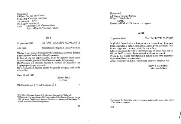 1 La risposta del Pallotti fu scritta nel margine sinistro dello stesso foglio che il