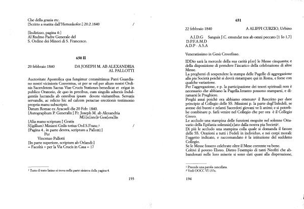Datum Romae ex Aracaeli die 20 Feb : 1840 . [ Autographum P . Generalis :] Fr . Joseph M . ab Alexandria