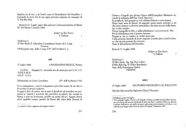 Io non vi dico di venire : ma se mai vi decideste di prendere un permesso p . venire [,] avvertite che potrebbe accadervi che veniste in Roma , e non mi trovereste , poiché sui primi del p . f . Agosto dovrò p [ er ] qualche tempo1 partire da Roma alla volta delle Diocesi di