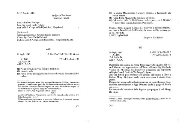 Il Randanini consegnò soltanto la lettera del Pallotti , non la sua , onde non sappiamo a che cosa si riferiscano i numeri tra parentesi .