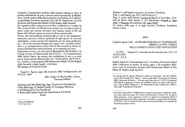 Imploriamo sù noi , e sù tutti tutte le Benedizioni del Paradiso : e la Grazia , la Pace , la Misericordia del N . S . G . C , e la Comunicazione dello Spirito Santo7 sia sempre più moltiplicata sù noi , e su tutti per la stessa infinita Misericordia : per i meriti infiniti del N . S , G . C , e p . i meriti , e intercessione della Immacolata Madre di Dio Regina degli Apostoli , e degli Angeli , e dei Santi .