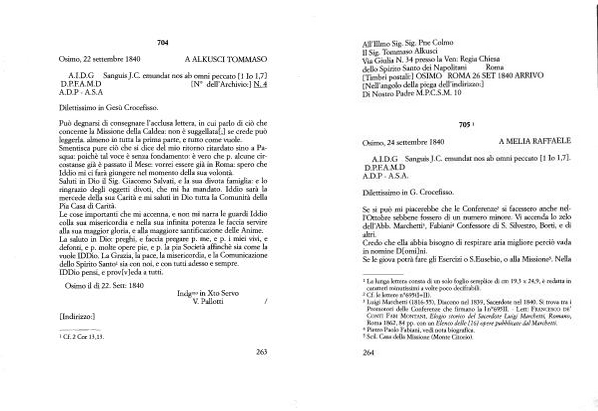 A . LD . G Sanguis J . C , emundat nos ab ornili peccato [ 1 Io 1,7 ] D . P . F . A . M . D [ N ° dell ’ Archivio :] N . 4 A . D . P - A . S . A