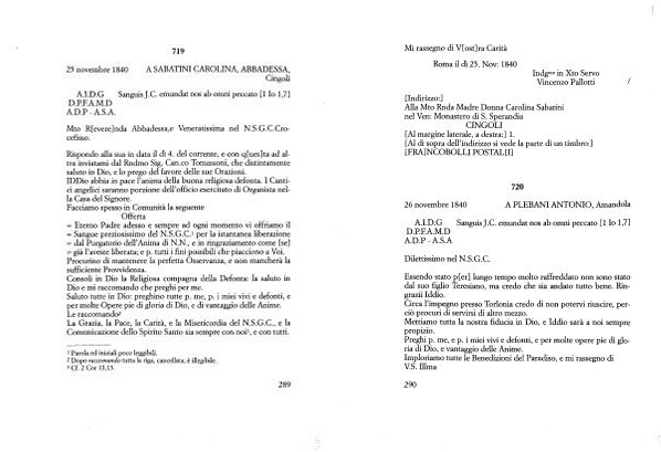 Saluto tutte in Dio : preghino tutte p . me , p . i miei vivi e defonti , e per molte Opere pie di gloria di Dio , e di vantaggio delle Anime .