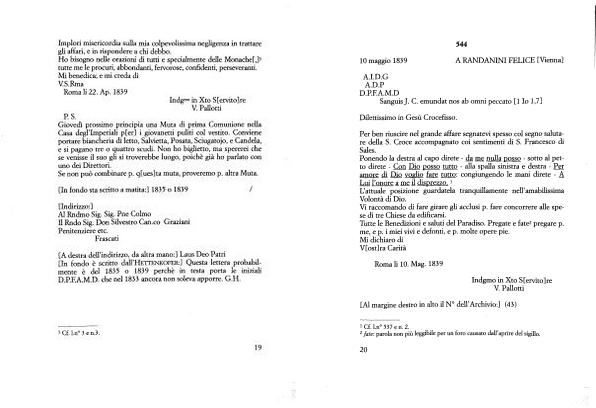 Vi raccomando di fare girare gli acclusi p . fare concorrere alle spese di tre Chiese da edificarsi . Tutte le Benedizioni e saluti del Paradiso . Pregate e fate12 pregare p . me , e p . i miei vivi e defonti , e p . molte opere pie .