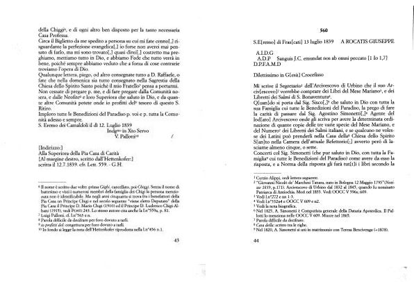 Imploro tutte le Benedizioni del Paradiso p . voi e p . tutta la Comunità adesso e sempre . S . Eremo dei Camaldoli il dì 12 . Luglio 1839
