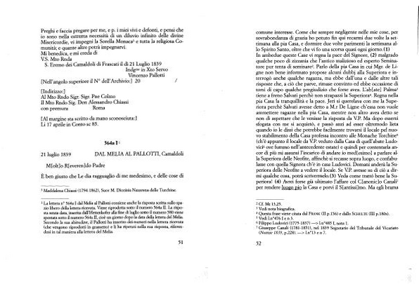 In ambedue queste Case vi regna la pace del Signore , ( 2 ) malgrado qualche poco di zizzania che l ’ antico malizioso ed esperto Seminatore pur tenta di seminare2 . Parlo della pia Casa in cui Mgr . de Ligne non bene informato propose alcuni dubbj alla Superiora e interrogò anche qualche ragazza , ma ebbe dall ’ ima e dalle altre tali risposte che , a ciò che parve , rimase convinto ed ebbe occasione di torsi di capo qualche pregiudizio che forse avea . L ’ ab [ ate ] Palma3 tiene a freno Salvati perchè non strapazzi la Superiora4 . Regna nella pia Casa la tranquillità e la pace . Jeri si querelava con me la Superiora perchè Salvati avesse detto a M . r De Ligne ch ’ essa non vuole ammettere ragazze nella pia Casa , mentre non altro avea detto se non di aspettare che le venisse la risposta da V . P Ma dopo essersi sfogata con me si acquietò , e passò anzi ad esser oltremodo lieta quando io le dissi che potrebbe facilmente trovarsi il locale pel nuovo stabilimento della Casa professa incontro alle Monache Torchine5 ( ch ’ è appunto il locale da V . P . veduto dalla Casa di quell ’ abate Ludovici6 ove fummo nell ’ antecedente estate ) e quindi per contentarla ancor di più mi assunsi l ’ incarico di andare io med [ esimo ] a parlare alla Superiora delle Neofite , affinchè si recasse sopra luogo , e confabulasse con quella Signora ch ’ è in casa Ludovici . Domani anderà la Superiora delle Neofite a vedere il locale . Se V . P . avesse su di ciò a dirmi qualche cosa , potrà scrivermelo . ( 3 ) Veda come trattò bene la Superiora ! ( 4 ) Avrei forse già ultimato l ’ affare col C [ anonic ] o Canali7 per rendere luogo pio la Casa e porvi il S [ antissi ] mo . Ma egli brama