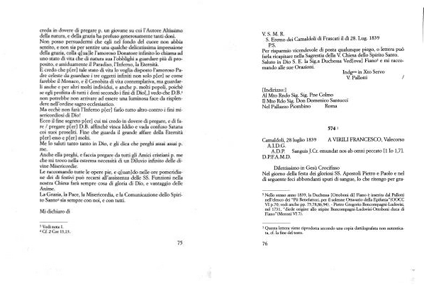 E credo che p [ er ] tale stato di vita lo voglia disposto l ’ amoroso Padre celeste da guardare i tre oggetti infiniti non solo p [ er ] se come farebbe il Monaco , e il Cenobita di vita contemplativa , ma guardarli anche e per altri molti individui , e anche p . molti popoli , poiché se egli profitta di tutti i doni secondo i fini di Dio [,] vedo che D . B . 3 non potrebbe non arrivare ad essere una luminosa face da risplendere nell ’ ordine sagro ecclesiastico .
