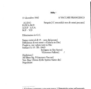 2 II Vaccari , venuto a Roma , conobbe Don Vincenzo nel 1842 . L ’ anno dopo prese l ’ abito della Società ( HETTENKOFER , De sociis .., Roma 21953 , p . 31 . - AMO