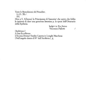 Dica a S . Altezza ] la Principessa di Sassonia3 che spero che Iddio le ispirerà di dare una generosa limosina p . le spese dell ’ Ottavario della Epifania .
