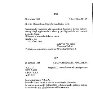 Raccomando vivamente alla sua carità il Sacerdote Latore del presente p . fargli applicare la S . Messa p . pochi giorni del suo trattenimento in Roma .