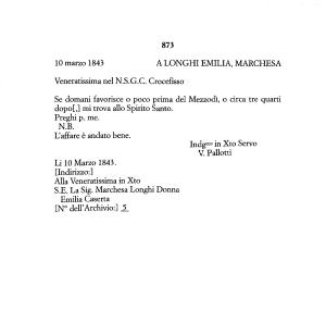 Li 10 Marzo 1843 . [ Indirizzo :]